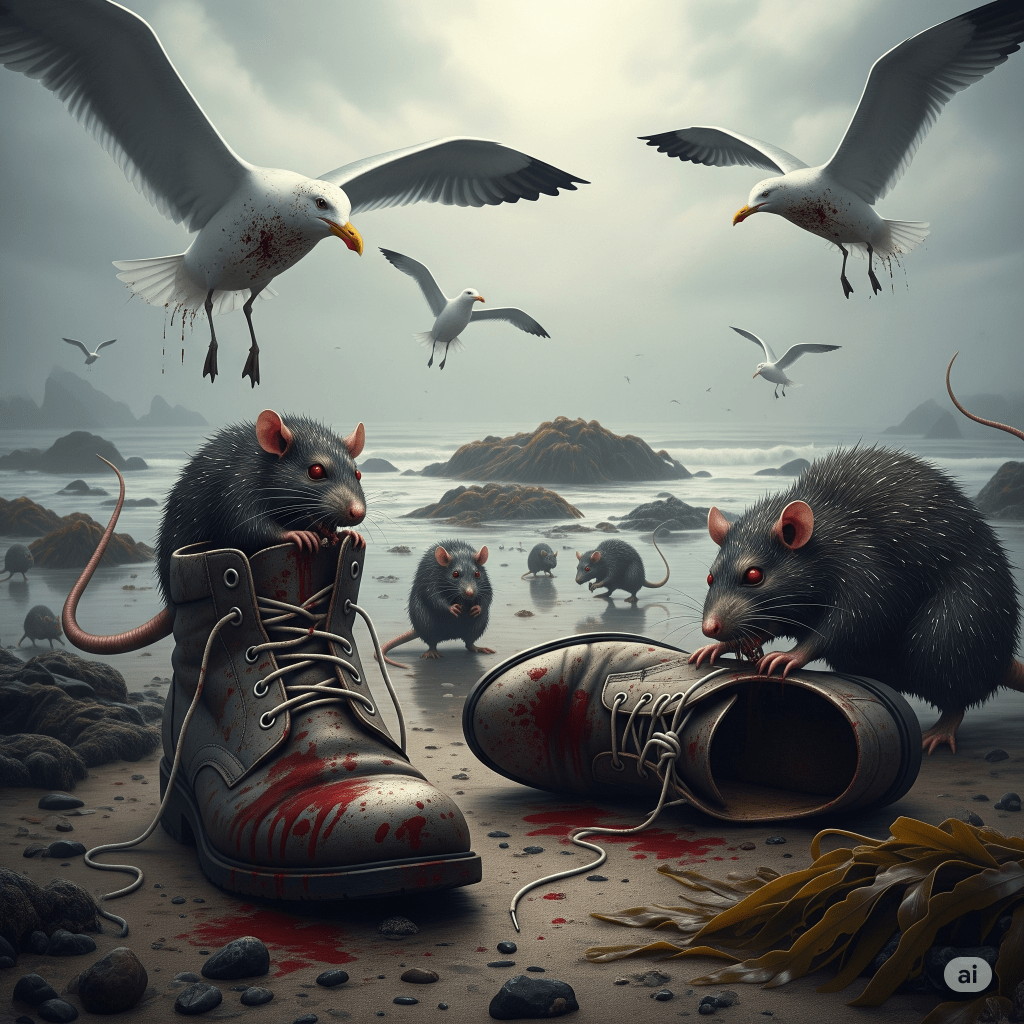 Vyšla pred prízemný byt, v ktorom žila. Videla, že podlaha potkanov sa hýbe s ňou. Prenasledujú ju. Topánky viedli armádu potkanov.